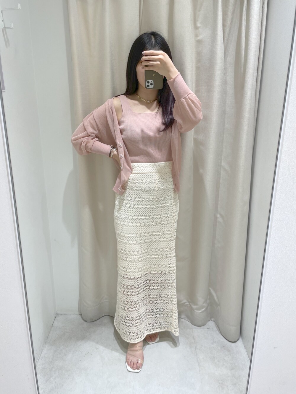咲栄のアンサンブル「【WEB限定】ほんのりシアーカーデ+タンクセット」を使ったコーディネート