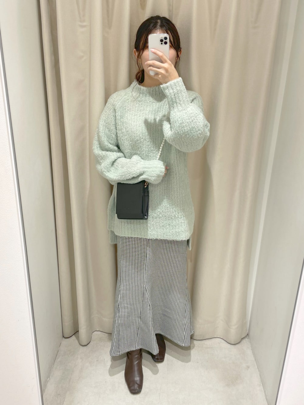 名前の通りふわふわでとっても可愛いニットです💚スカートで合わせていますがすっきりめのパンツでも素敵だと思います◎