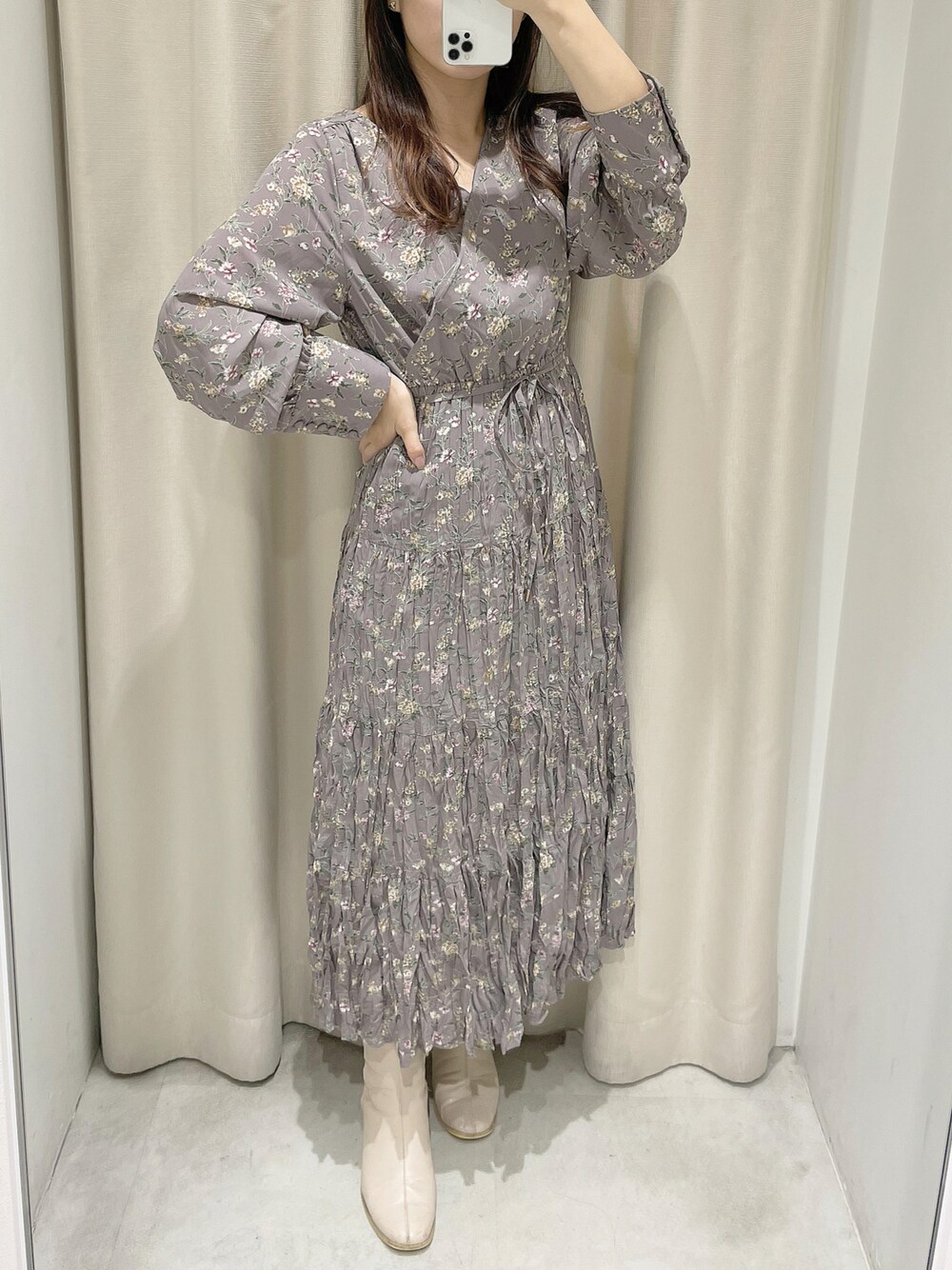 咲栄(natural couture)のワンピース「【WEB限定カラー有り】前後2WAYカシュクールティアードワンピース」を使ったコーディネート