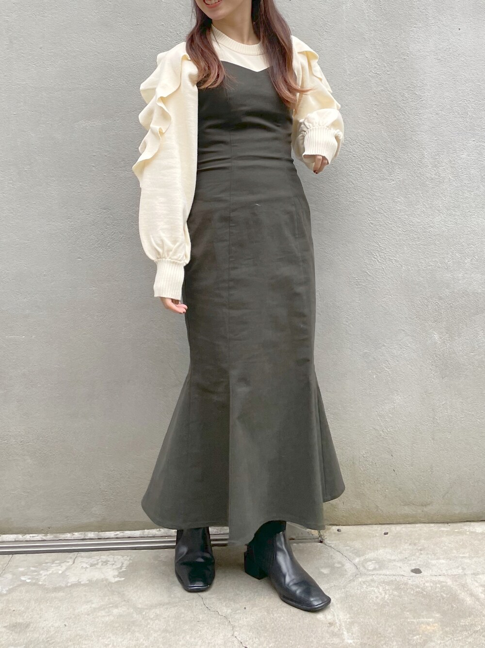 咲栄(natural couture)のジャンパースカート「【WEB限定】ハイウエストマーメイドジャンスカ」を使ったコーディネート