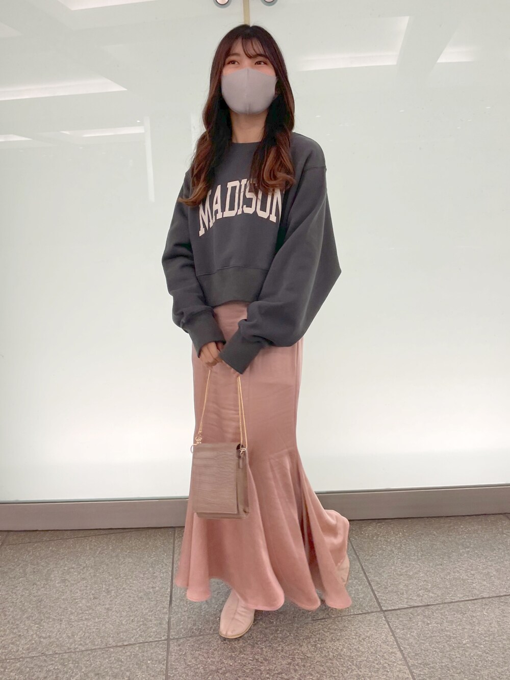 形の綺麗なマーメイドスカートとあわせるとトレーナーでもカジュアルすぎず着ていただけます◎