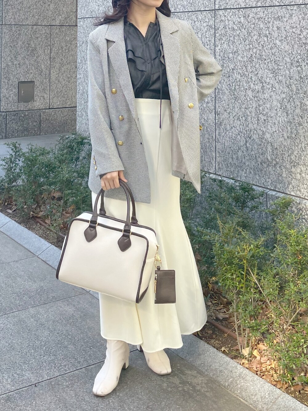 ガーリーになりがちなフリルブラウスもモノトーン合わせたら甘くなりすぎずお使い頂けます!