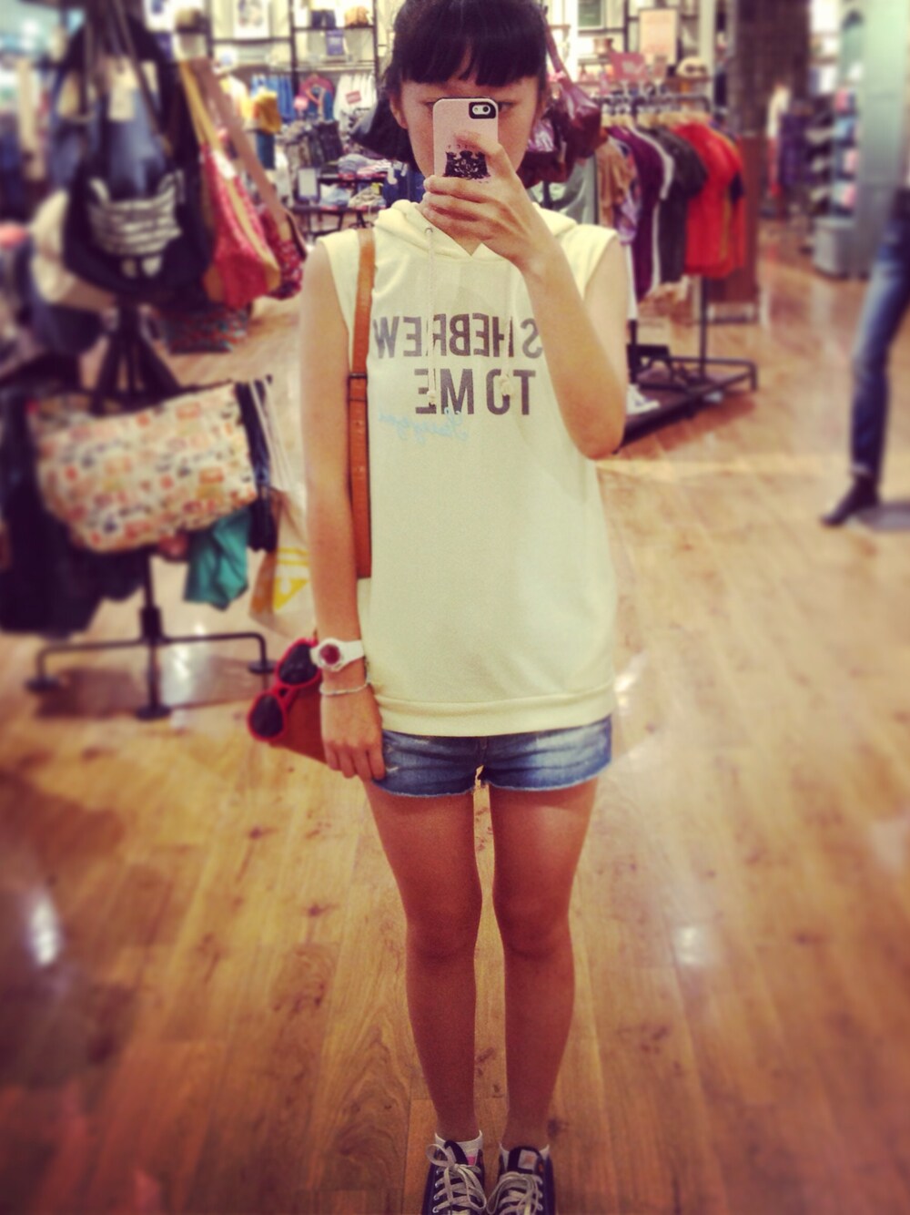 2013/summer Tops:olivedesolive Short pants :titty&co. Bag:no bland Shoes:converse バッグに赤のサングラスをかけて楽しげに。 茶色のバッグは何にでも合うからおすすめです。
