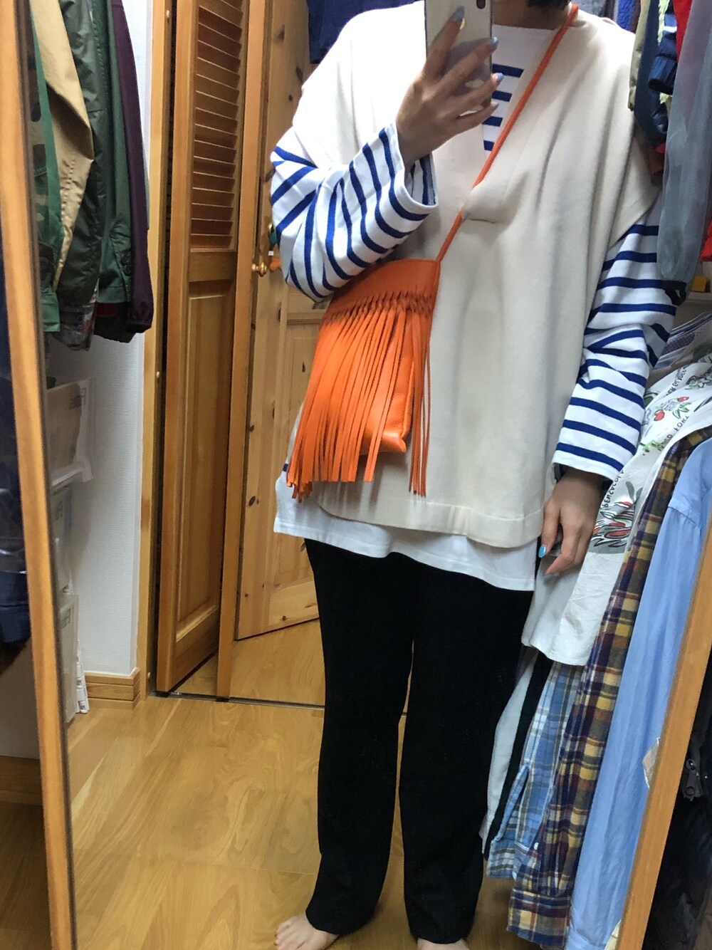 aamasのショルダーバッグ「<NOMADIS>レザーフリンジショルダーバッグ ο」を使ったコーディネート