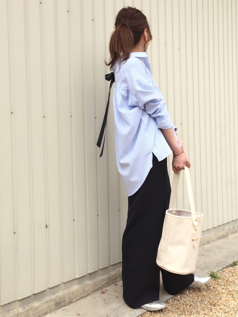 おはようございます♡ 昨日のリアルコーデです♡ ストライプシャツ✖︎ワイドパンツ✖︎シルバーシューズ✖︎バケツバック 日中はこの服装でも過ごしやすかったです☺️ 見て頂きありがとうございました(๑˃̵ᴗ˂̵)♡
