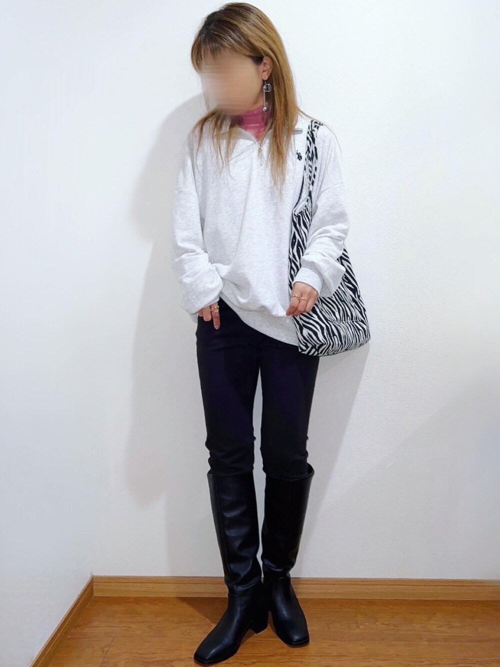 WEGOのUSPOLO ハーフZIPPO ゆるっとたっぷりボリュームのある袖😊 164cmの私でもお尻が隠れる長め丈! シアーインナーを合わせたけど 真冬の寒い時はハイネック合わせたり 色々楽しめそう✌️ 足元はスキニーにロングブーツ🖤👢 𝐈𝐧𝐬𝐭𝐚𝐠𝐫𝐚𝐦 ↓↓↓ satomi.a.y
