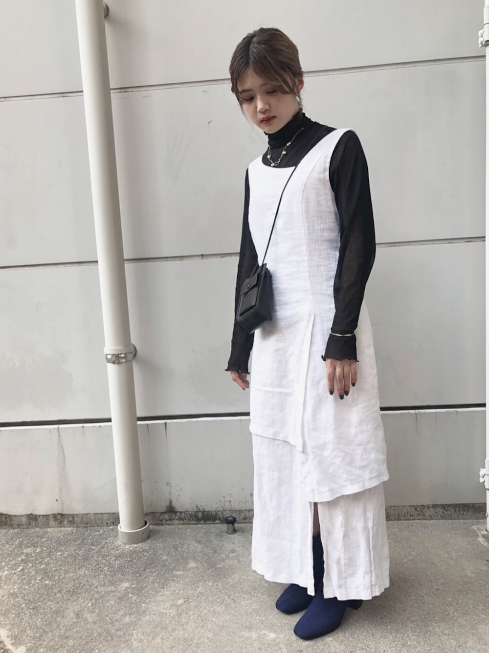 白のリネンのワンピースは 古着屋さんです𓀤𓀤