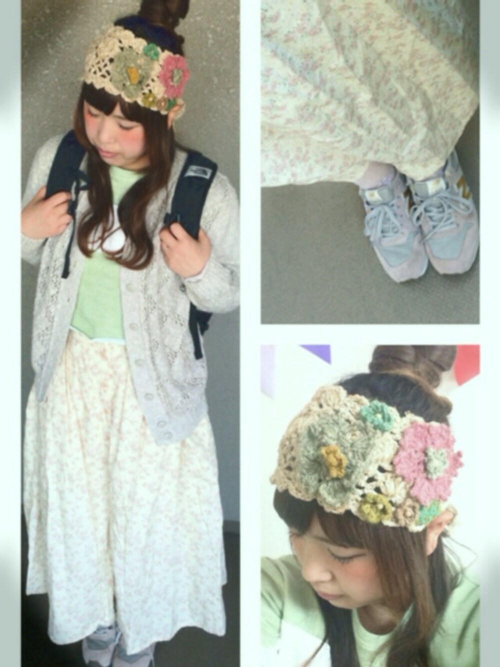 トップスRETLOGIRL カーディガンused スカートcrisp ヘアバンドチャイハネ 毎年出るこのデザインの ヘアバンドお気に入りー! 買ったのは2年前くらい! 春カラーコーデ楽しい(*^_^*)/////