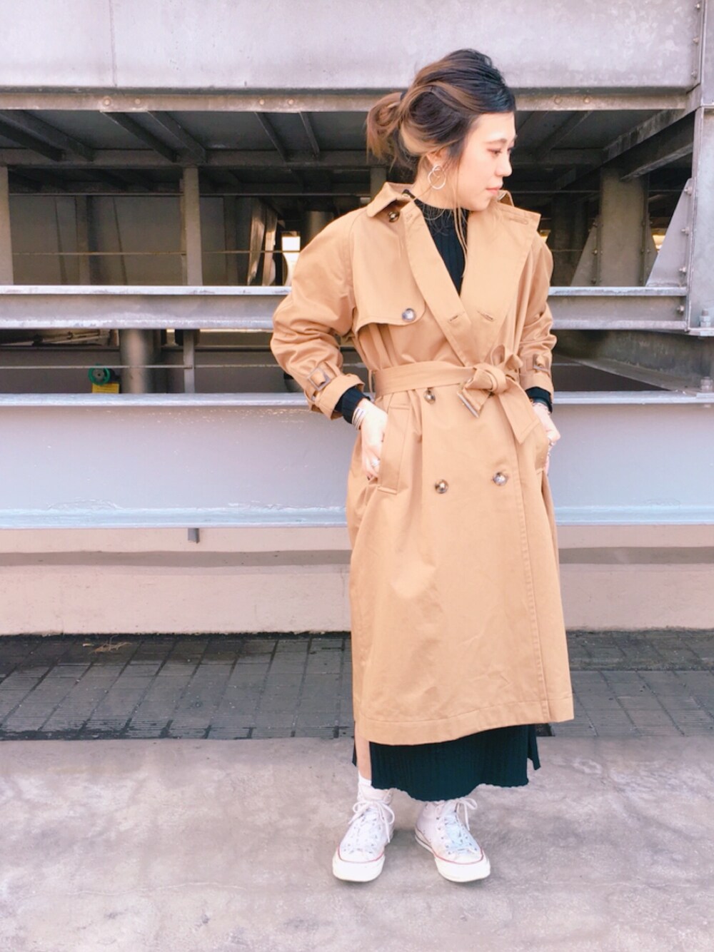 トレンチコート × ワンピース デニムもいいけどたまには違うスタイルでも◎。 ウエストもお袖もギュッと締めて着るのが気分。