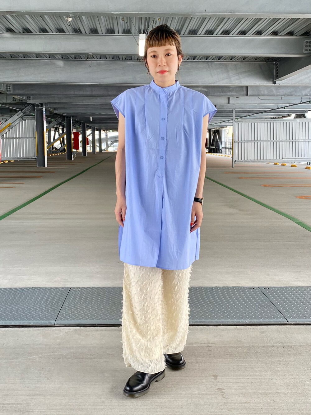 シャツで少しかっちりと。サックスブルーで夏らしく。