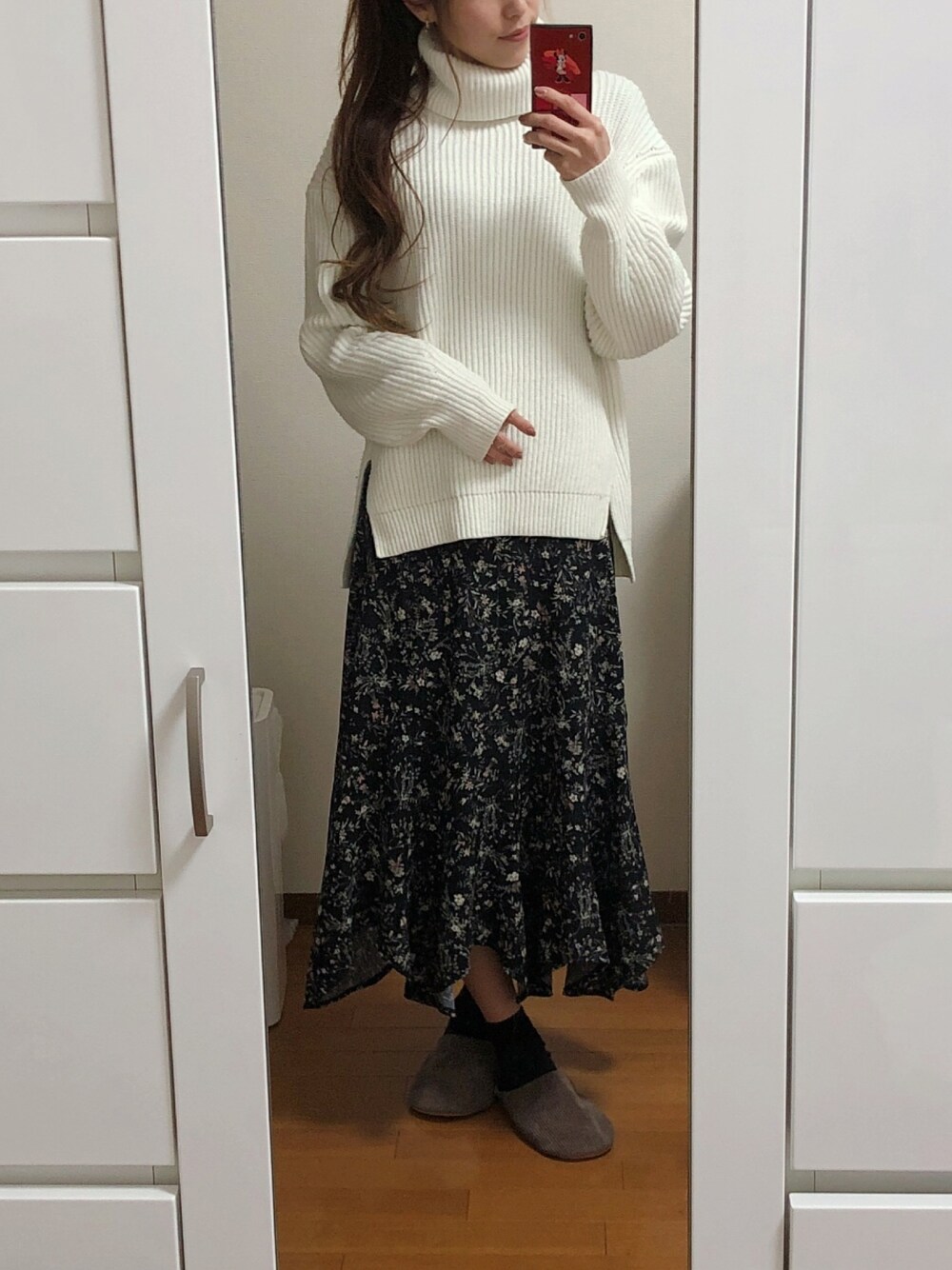 saaaya_codeのニット/セーター「スリット入りタートルネックニットトップス」を使ったコーディネート