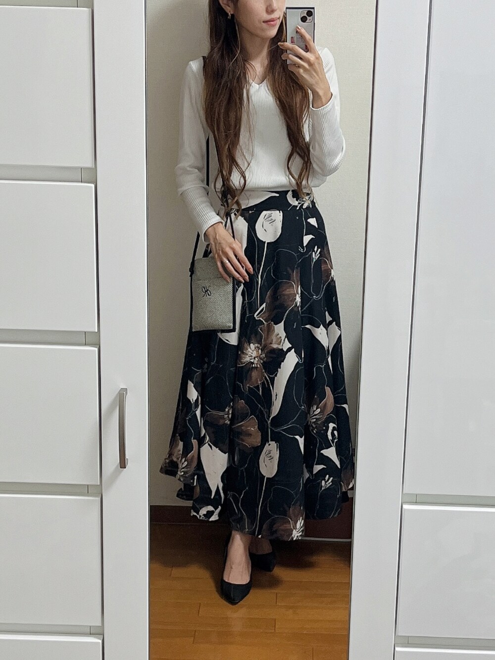 寒いから厚手のスカートであったかく。 このスカート大好きすぎてイロチ欲しいぃ! 再販しないかなぁ🥺💕 こんなきれいなラインなのにポケットもあって本当に優秀。