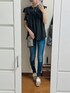 ちょっと涼しい雨のだからスキニーを💙 夏は暑くて履きたくないけど、ノースリーブとかのトップスにスキニー合わせてサンダル履くの好き♫ でも足が太ってる…! スキニーがシワシワだ⚡️ 足痩せしたいなぁ。