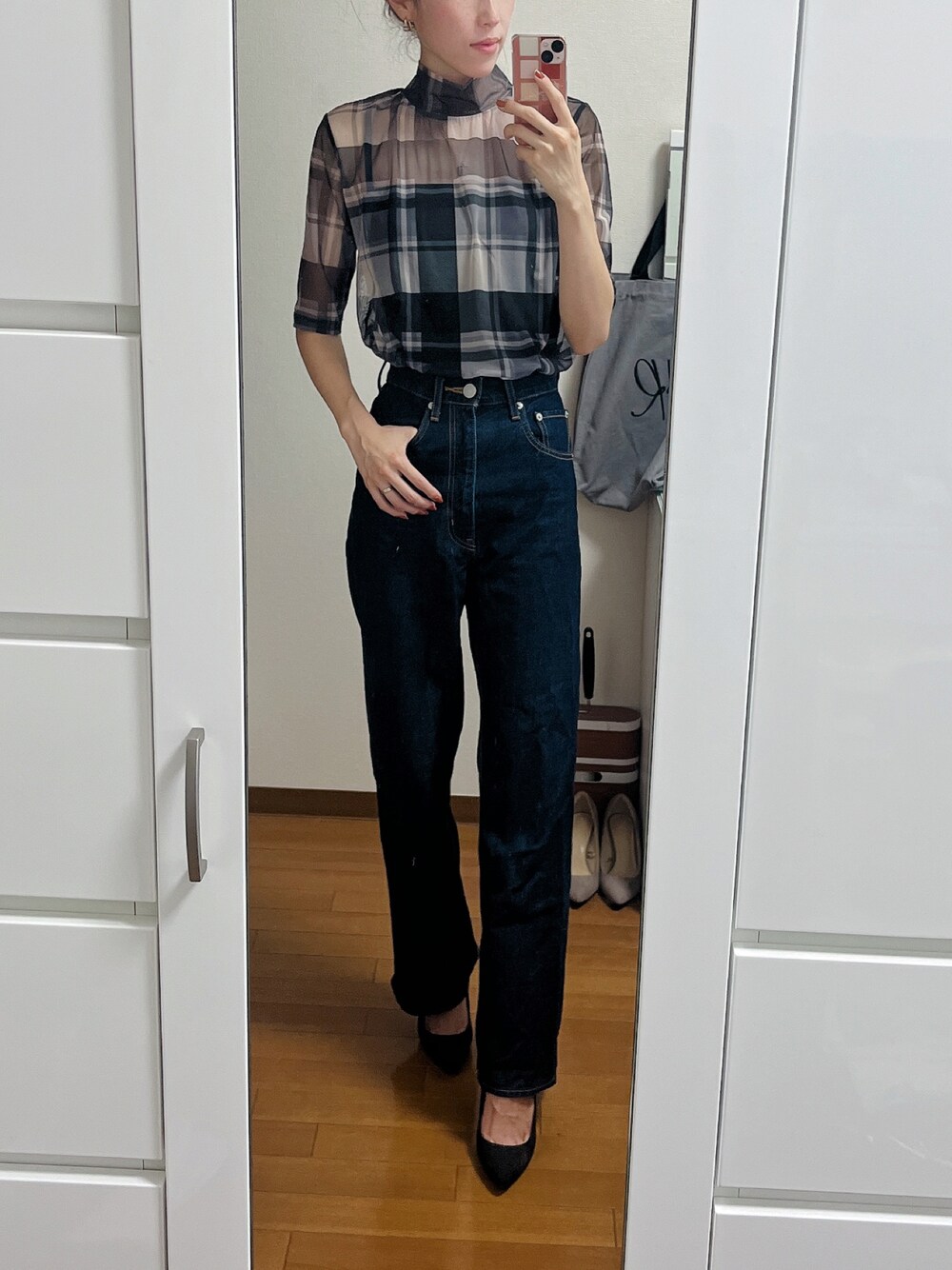 saaaya_codeのTシャツ/カットソー「シアーチェックチュールトップス」を使ったコーディネート