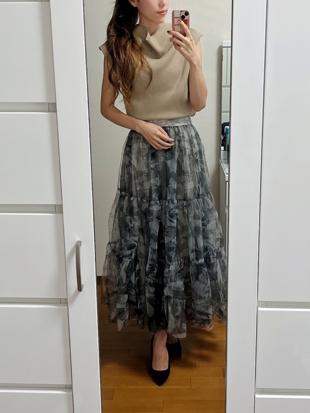 saaaya_codeのTシャツ/カットソー「アシンメトリードレープハイネックニットトップス」を使ったコーディネート