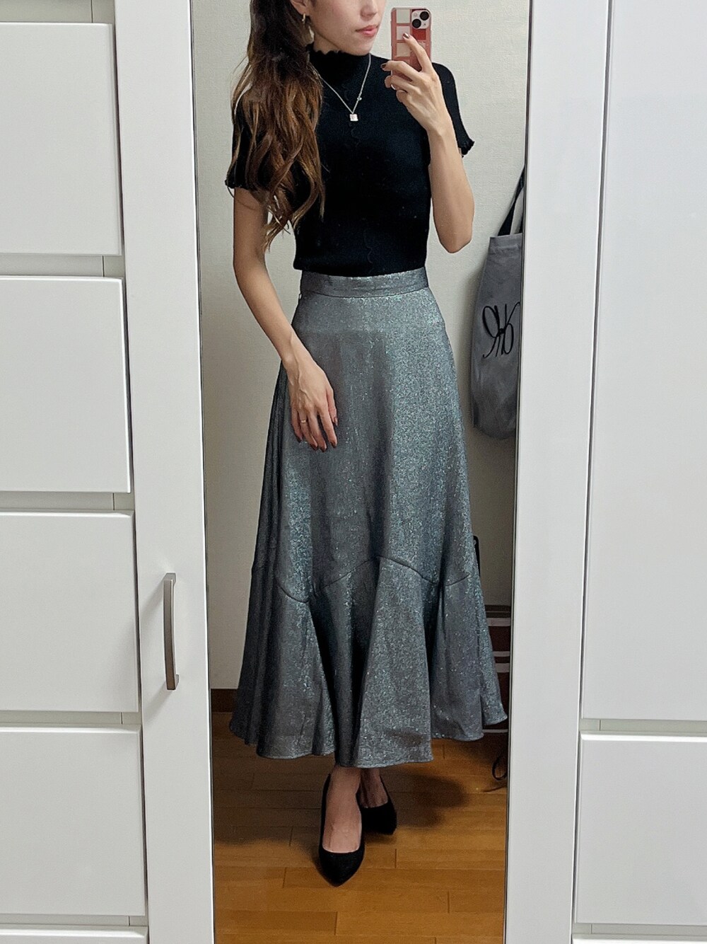 シルバーのラメラメスカート! 旦那には良さがわからないみたいだけど、すごくかわいくて好きだから着る😤💕