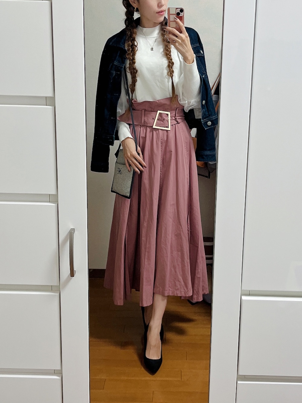 きれいめに三つ編みでちょっとカジュアルダウンさせるのがマイブーム! デニムジャケットが最適な時期到来🌾 今季流行りのもう少し丈短いアウター欲しいなぁ。
