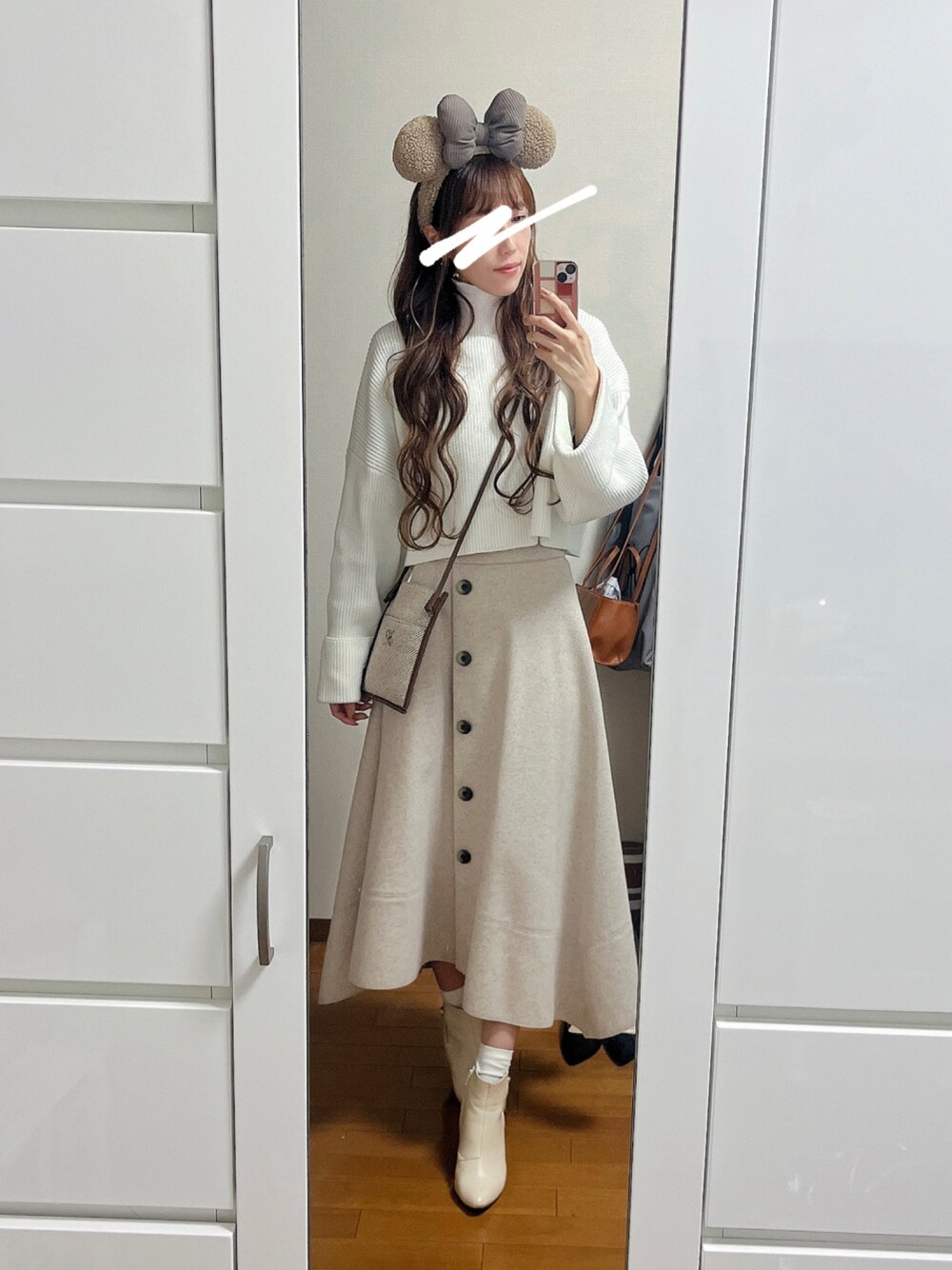 載せ忘れのディズニーコーデ🐭🎈 ハロウィンの時にブラックコーデだったから、クリスマスはホワイトコーデで🤍
