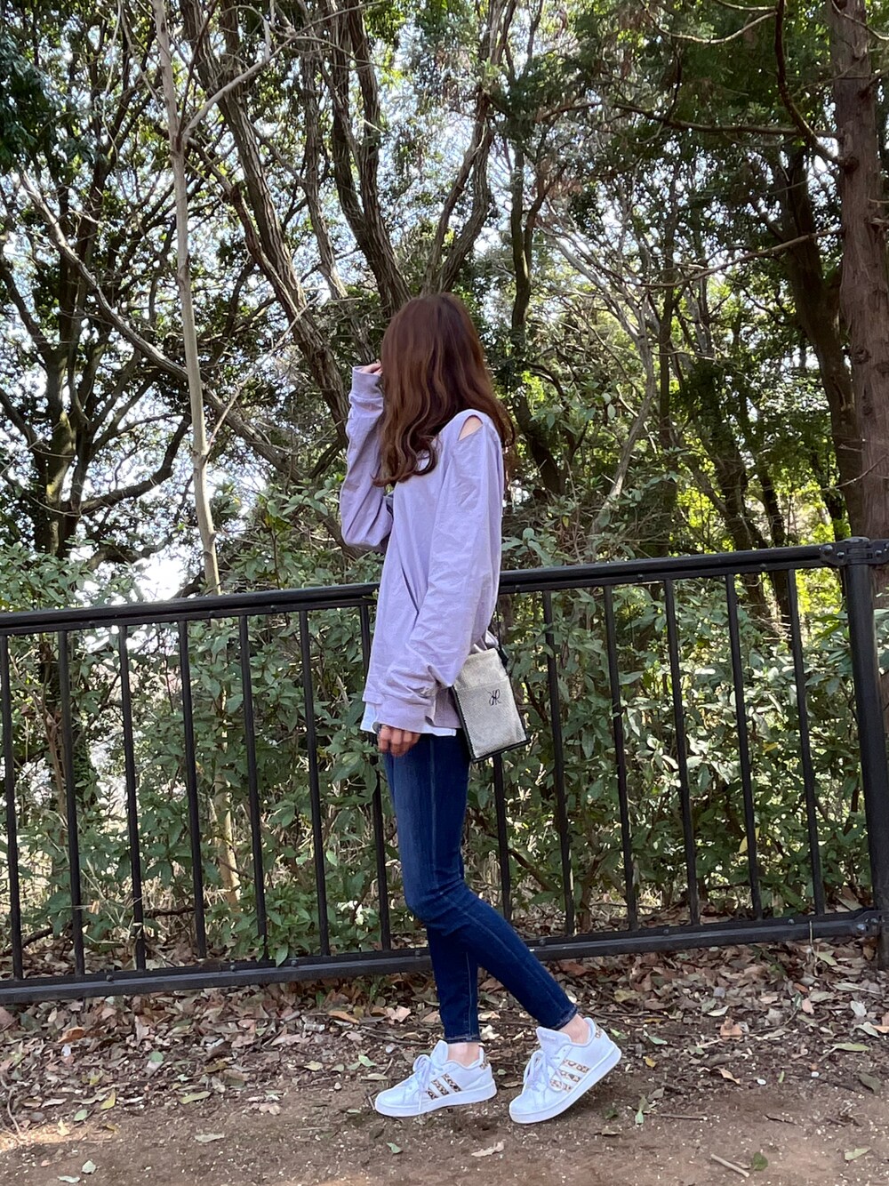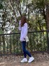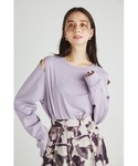 肩にスリットの入ったロゴTでゆるっと♫ 袖も長めでくしゅっとするし、カジュアル感の中に女性っぽさがあってとっても良き◎