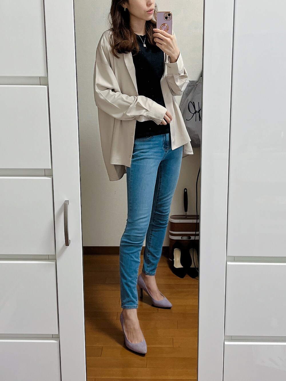 GUのマシュマロハイヒールパンプスはベージュ、ブラックはストックを持ってるくらい大好きなパンプス👠 今日のは去年一目惚れしたくすみパープルで、シンプルコーデの中に靴でカラーを入れられるからお気に入り! 今季のブルーも気になるなぁ🥰🥰