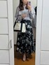 くすみブルーのブラウスに合わせるボトムスがなかなか難しく… 無難にモノトーンの花柄スカートで。 もうちょっとパキッとさせたいけど、持ってるスカートの何なら合うだろう🤔