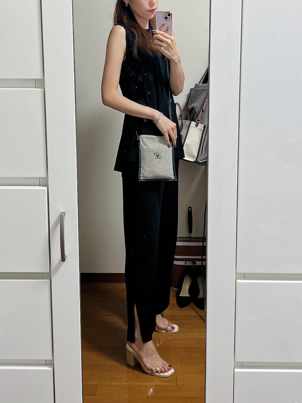 8月最後のコーデはオールブラックで🖤 この夏も夏コーデたっくさん楽しみました! まだまだ暑いけど、明日からは秋仕様にシフトチェンジしていきたいなぁと思ってる…🍂 35度じゃまだ無理かなぁ😂😂 このセットアップはすごく着心地が良くて楽ちんで、なのにおしゃれに見えて万能だったな🥰 まだ着たい! パンプスにしたら秋でも行けるかな🤔