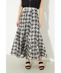 ホワイトとブラックの千鳥柄だけど、ホワイト部分がベージュっぽく、ワントーンぽく見えて◎ お袖がチュール素材のベージュのニットは暑い初秋にピッタリでお気に入り🍂