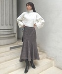 昨日のオールブラックからがらりと変えて♫ ホワイト×ブラウンのかわいい秋コーデ🥰 ショートブーツにしようかと思ったけど、マーメイドスカートのきれいさを出すためにパンプスで👠