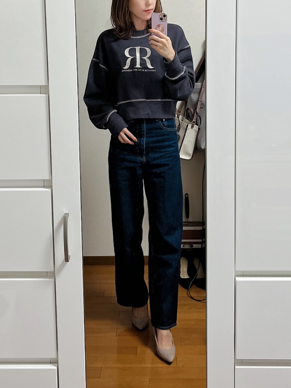 saaaya_codeのスウェット「クロップドRRスウェットトップス」を使ったコーディネート