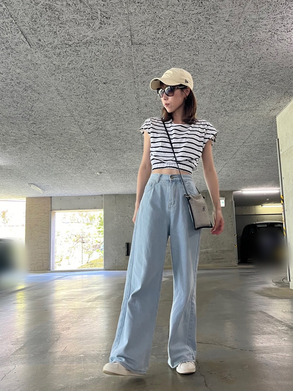 公園コーデにボーダー×淡いブルーのデニムで♫ キャップもサングラスも必須の時期、バリエーションないから新しい夏っぽいキャップが欲しいなぁ🧢