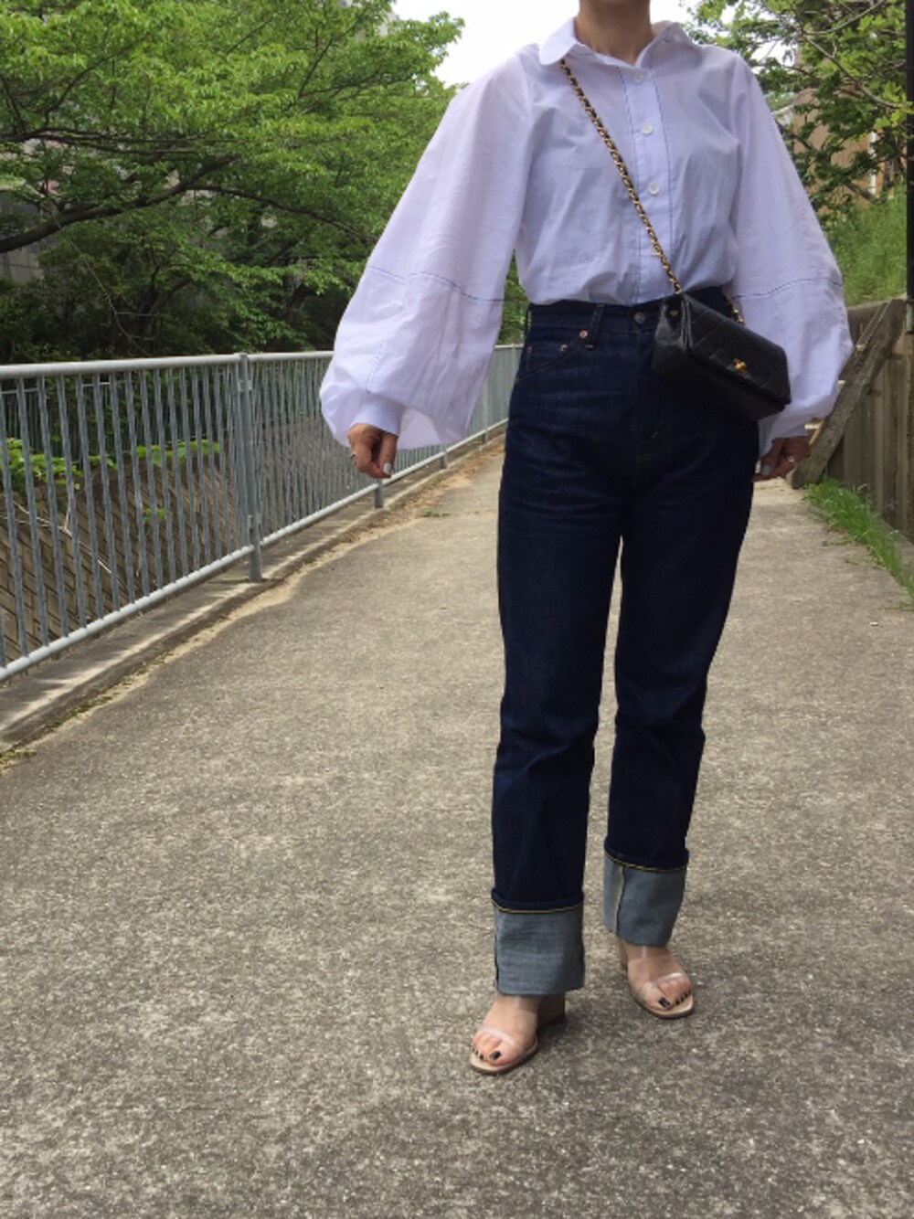バルーンスリーブシャツ 少し袖をあげるとボリュームが増し可愛いです。