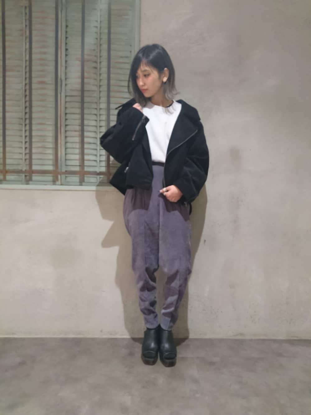saya(HAREららぽーとTOKYO-BAY店)のライダースジャケット「コーデュロイライダースジャケット(HARE)」を使ったコーディネート
