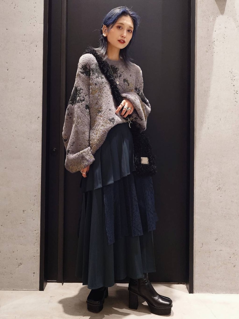 ゆるっとメンズニットコーディネート!! ラメ感が可愛い オーバーサイズのメンズニット♡ スカートにもパンツにも合わせやすい カラー展開です!!!