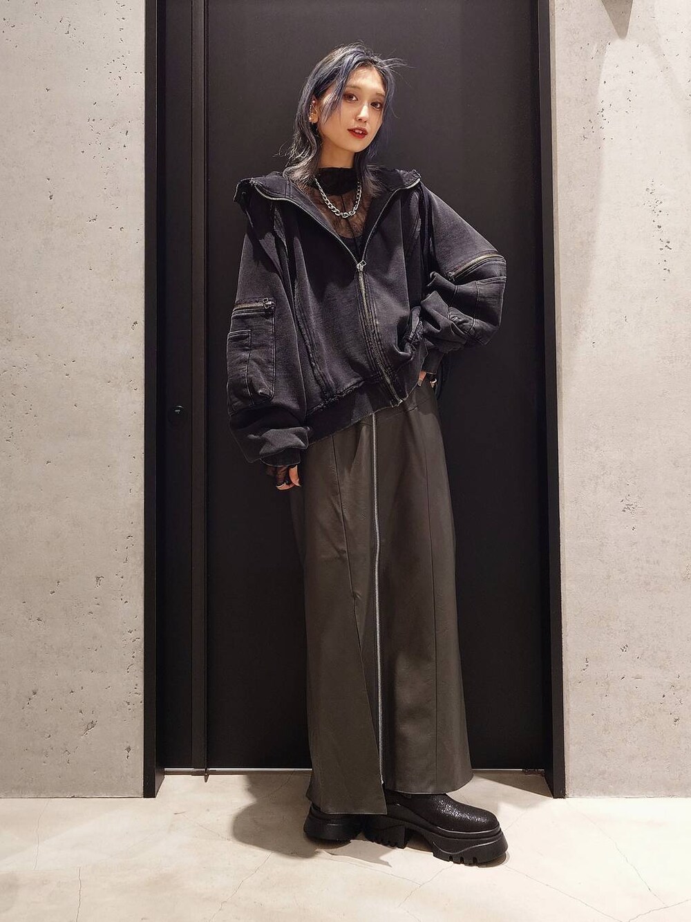 レザースカート×パーカーコーデは 頑張りすぎないコーデで 好きです♡♡