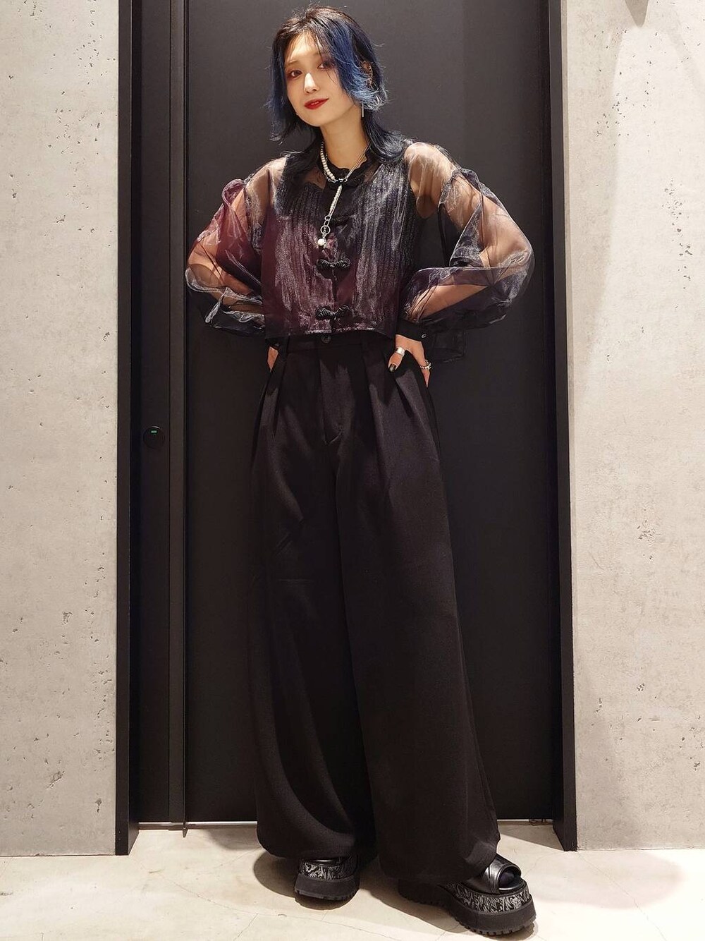 さりげなくカラーが入っている チャイナシャツ♡ ワントーンコーディネートのポイントカラーに オススメです!!!