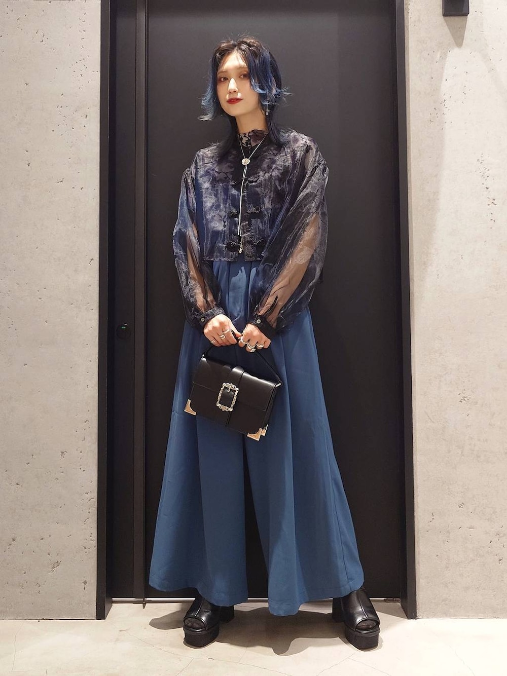 青カラーコーディネート! ボトムスはメンズDABOワイドパンツで ゆるコーデ♡