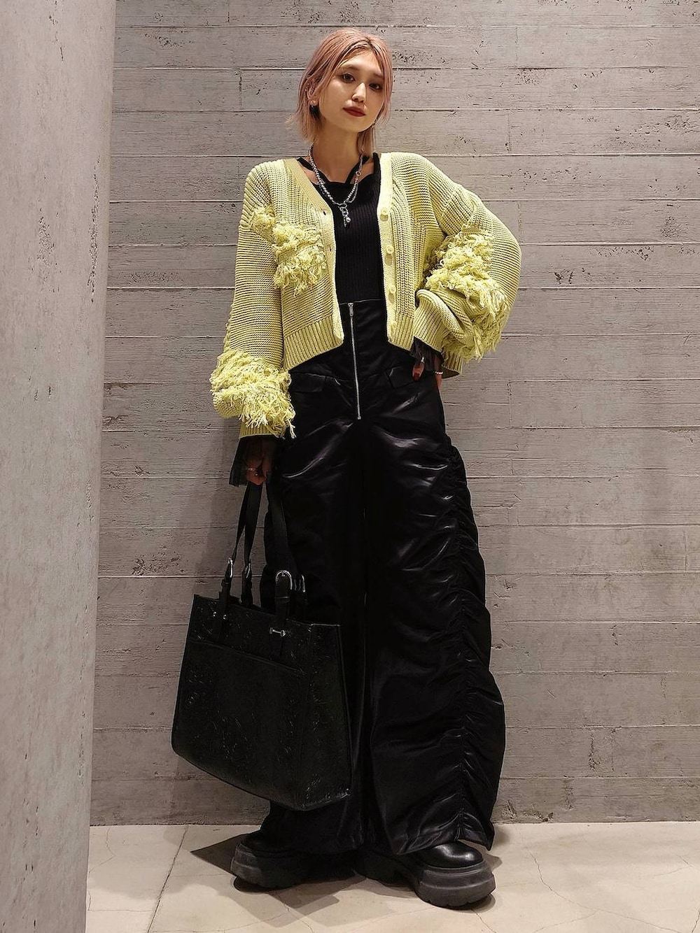 イエロー×ブラック🌙 カーディガンとワイドパンツの 楽ちんコーディネート☺️