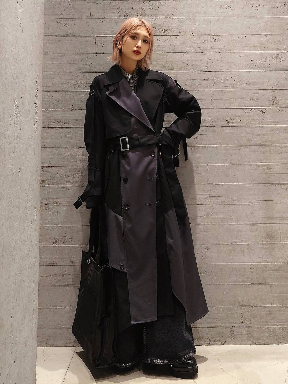 トレンチコート×デニム モノトーンコーディネート🐼🐩 縁取るようにさりげなく施した箔が、 カジュアルながらもモードな印象になる デニムパンツ👖