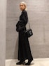 「重ねる」というテーマをプリーツの見え方で表現したシャツワンピース 和の雰囲気を感じさせる角袖シルエットで、 全体のデザインにさりげないジャポニズム要素をプラス