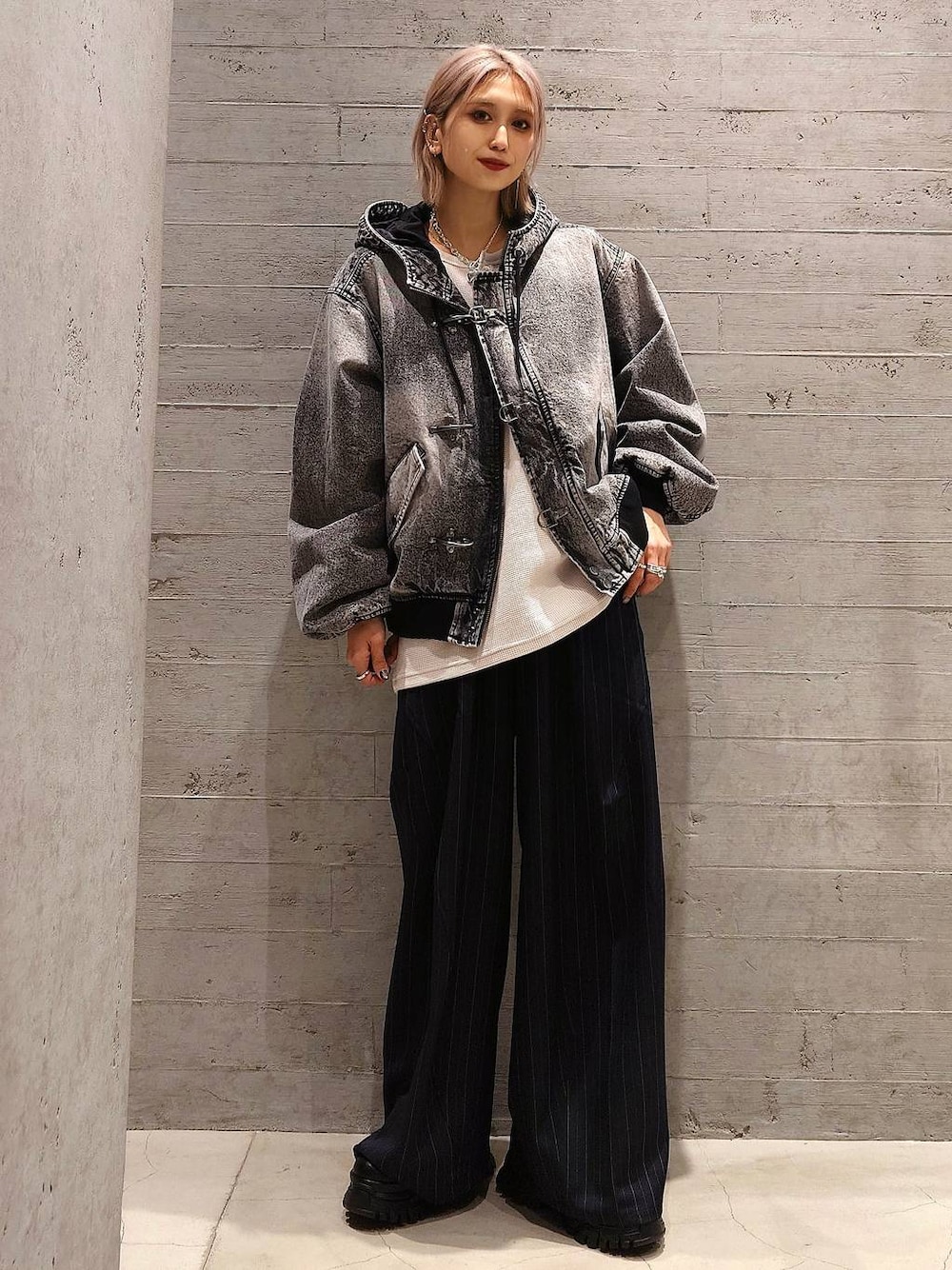 フードブルゾン×ワイドパンツ メンズコーディネート👿