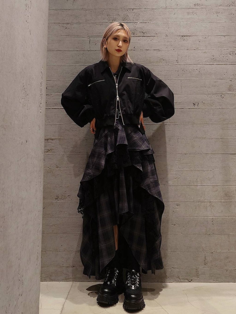 ブルゾン×スカート テールスカートになってる 最強に可愛いスカート❤️ 長袖でも人気だったラメニットの半袖も入荷してます😚