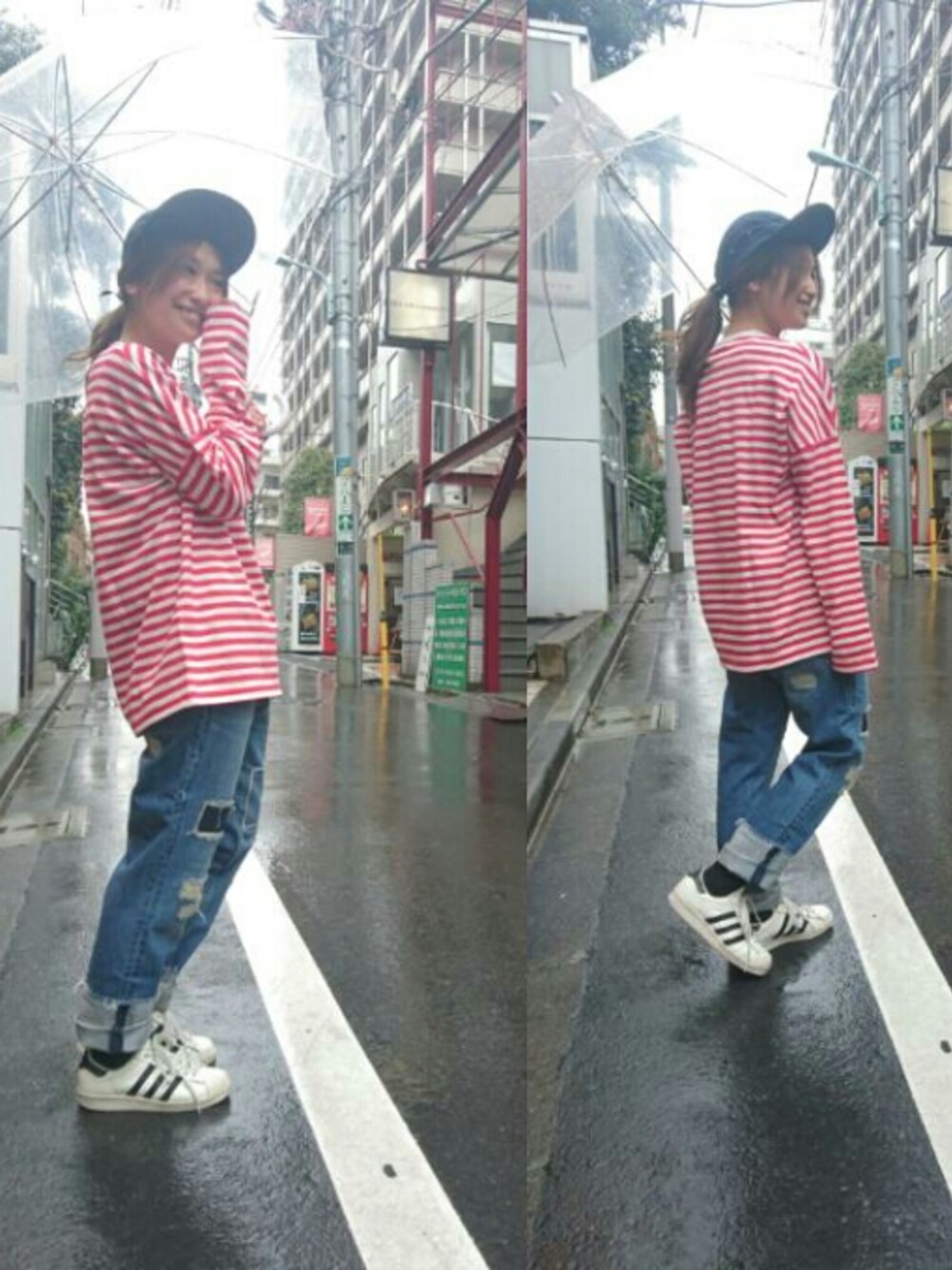 saya(HAREららぽーとTOKYO-BAY店)のTシャツ/カットソー「ボーダードロップカットソー(HARE)」を使ったコーディネート