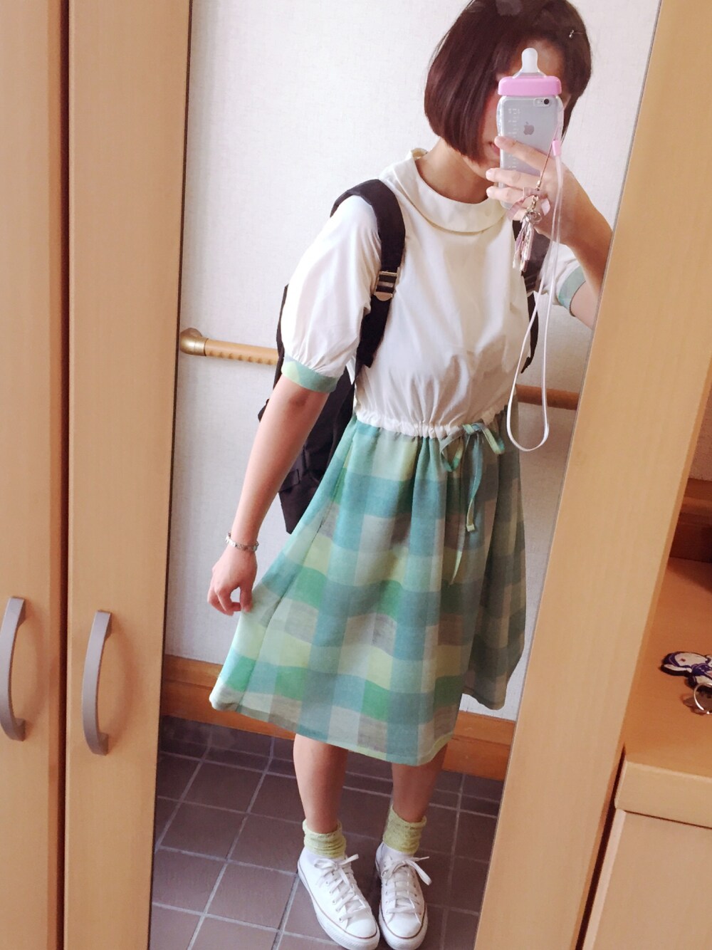 村田倫子ちゃんのワンピース♡ 夏が終わる前に着れてよかった! ワンピースが甘系だから、バックパックのリュックで私らしく(笑)