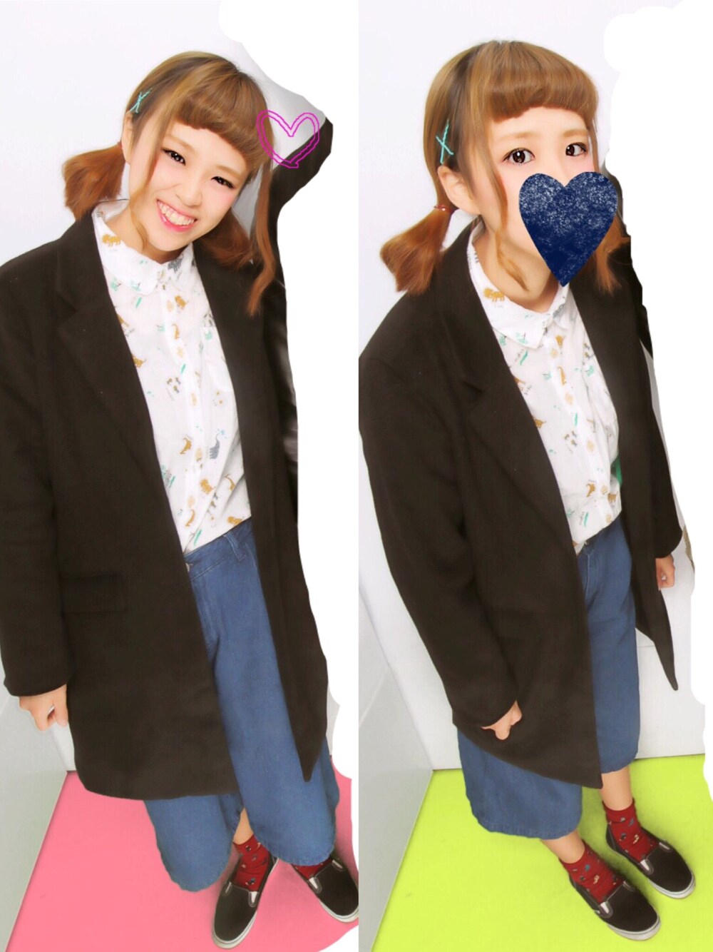 プリで失礼…!!! 1日おでーとでした♡ 久しぶりのプリにふたりして緊張(笑) このコーデのお気に入りはヘアピン☺️ 見えてるのはグリーンで✖️だけど 反対側はイエローで=の形に留めてある🙌🏻 算数かっ!!! 最近チェスターコートが大好きです🤔💓