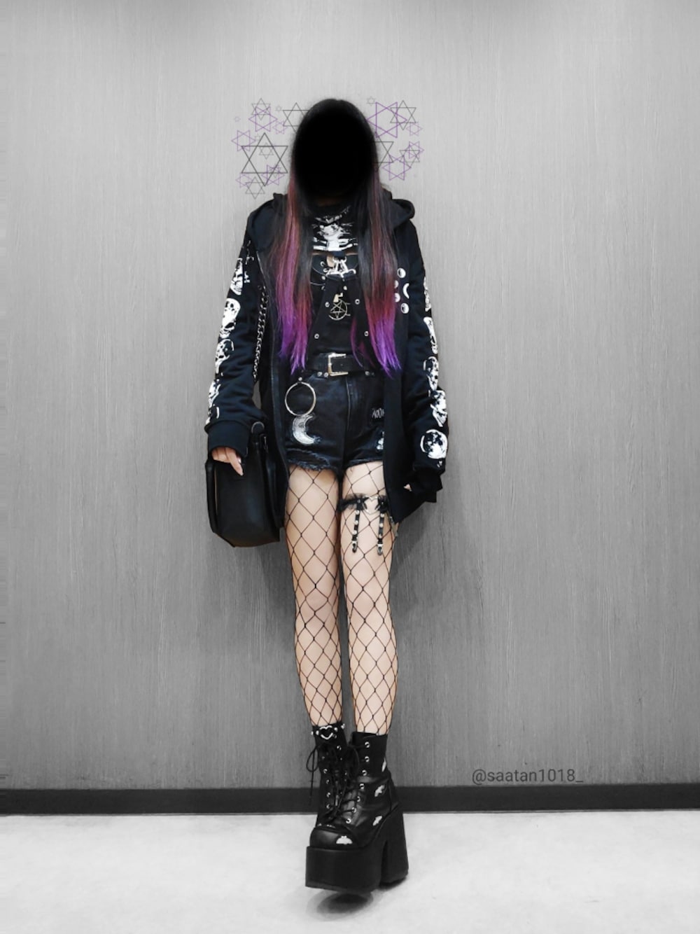 六芒星大好きマン 誕生日過ぎたら髪の毛切ろうと思います ※色味、頭の長さ、膝の黒さ鬼加工(( 〜タグつけられなかったもの〜 ・killstarのバッグ ・HELL CAT PUNKSのアンクレット ・Restyleのベルト ・Amazonで買ったレースアップリブニット