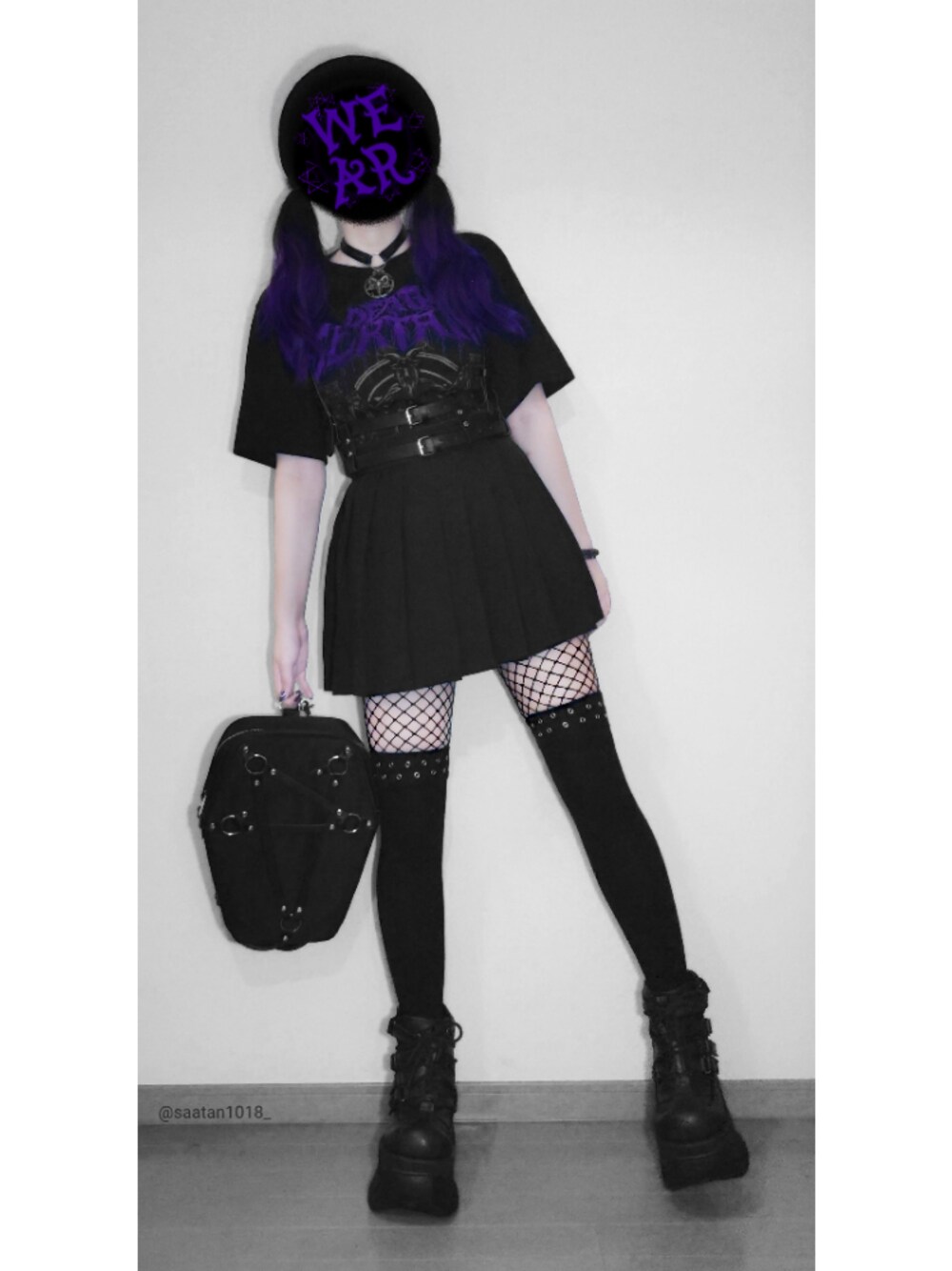 絶対領域にも網タイツ。 バンドTシャツとかでも合いそう。 ※画質良版、別shotはInstagram ✡載せきれなかったアイテム✡ ・バックパック(KILL STAR) ・網タイツ(KILL STAR) ・ファーシュシュ(Amazon)