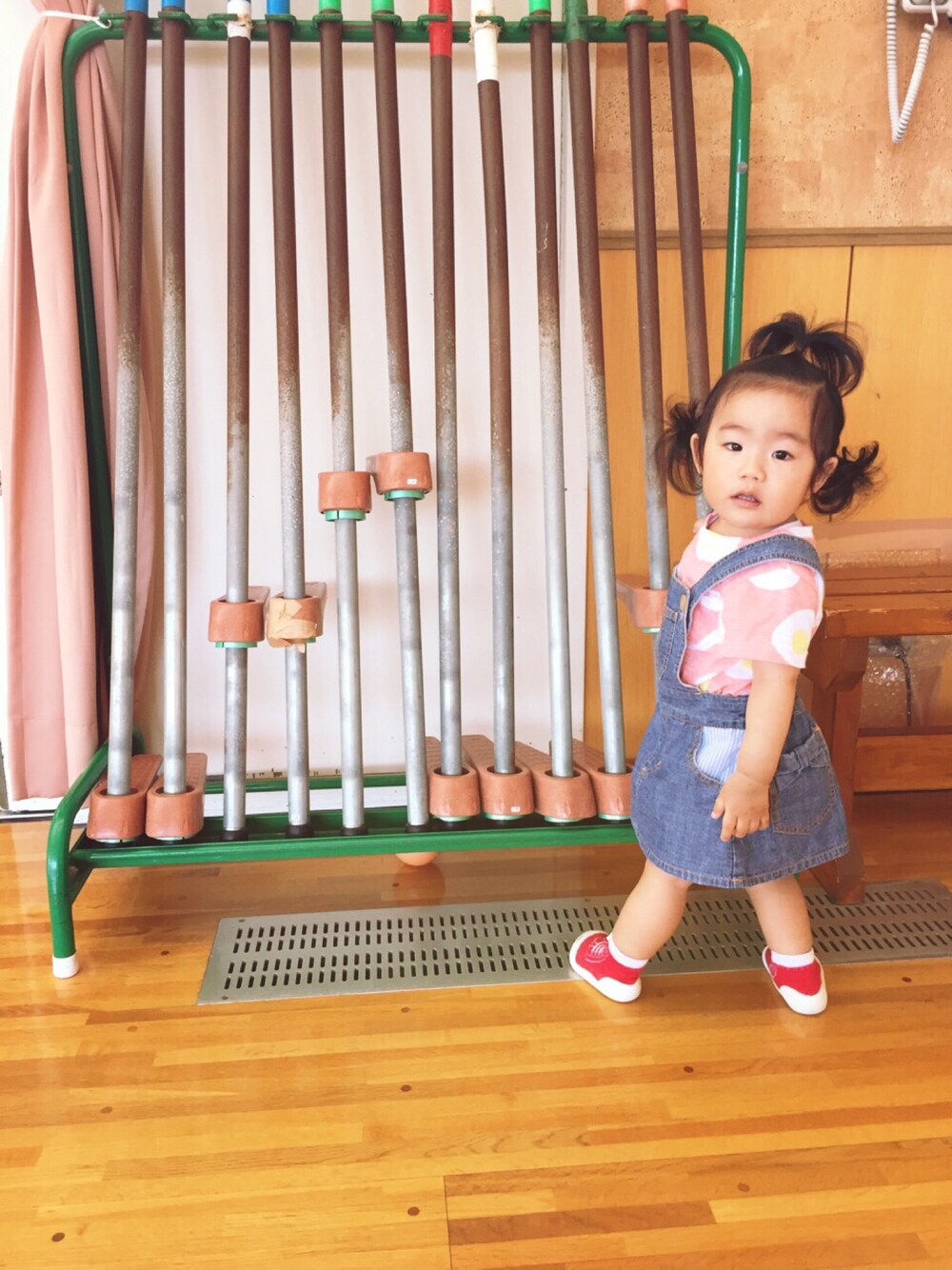 児童館にあんよの練習に行ったのに竹馬から離れない娘…(´・ω・) しかも髪型サザエさんみたいww 今日はお気に入りの目玉焼きTシャツ♡♡ 久々に天気が良いので今から公園行ってきます☻