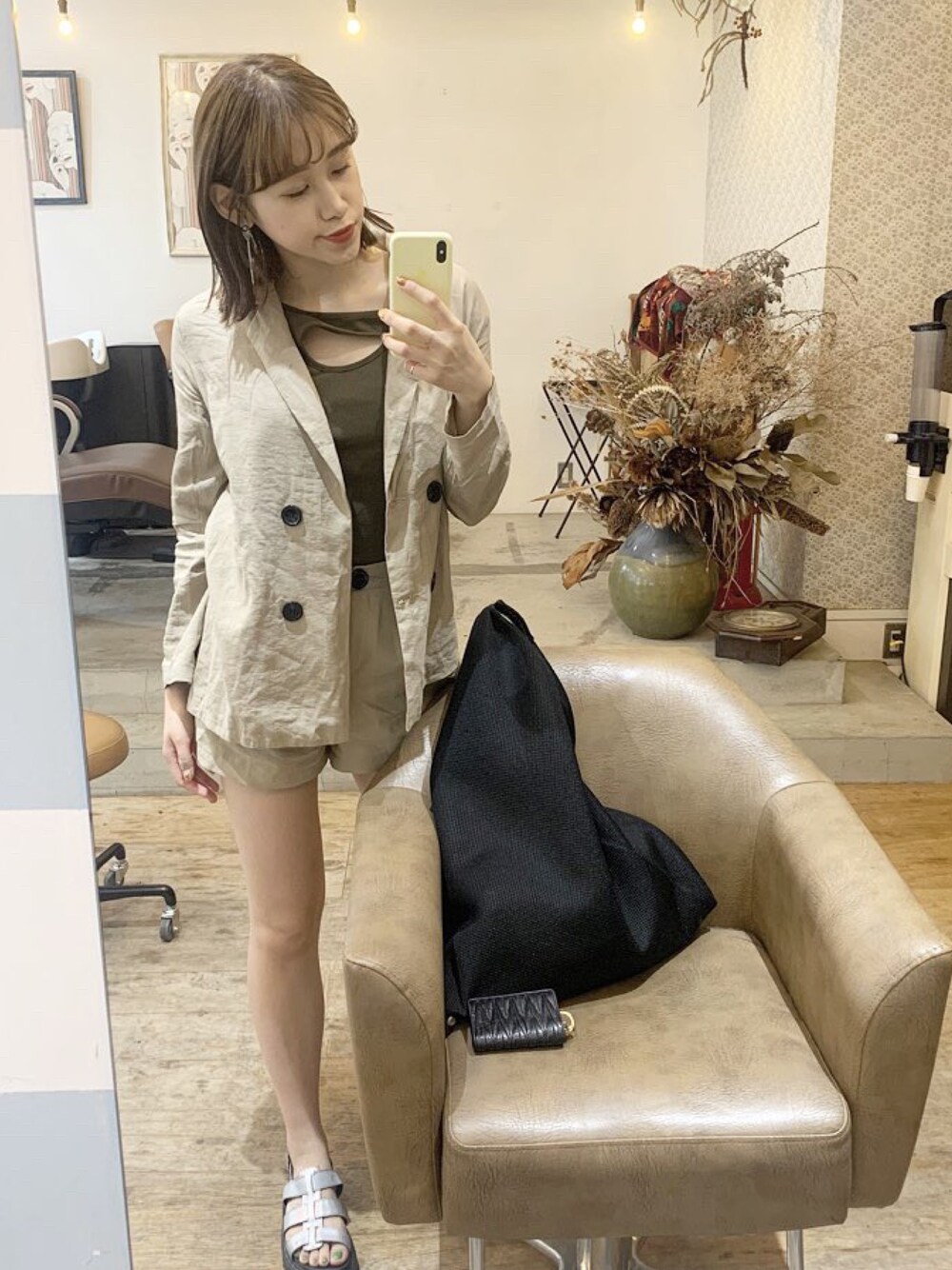 Instagramにも載せたものです💡 リネンのセットアップは プチプラ韓国のやつ〜!!! サンダルはもう見納め✊🏽