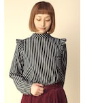 saaaのトップス「先染めストライプ柄肩フリルプルオーバー」を使ったコーディネート