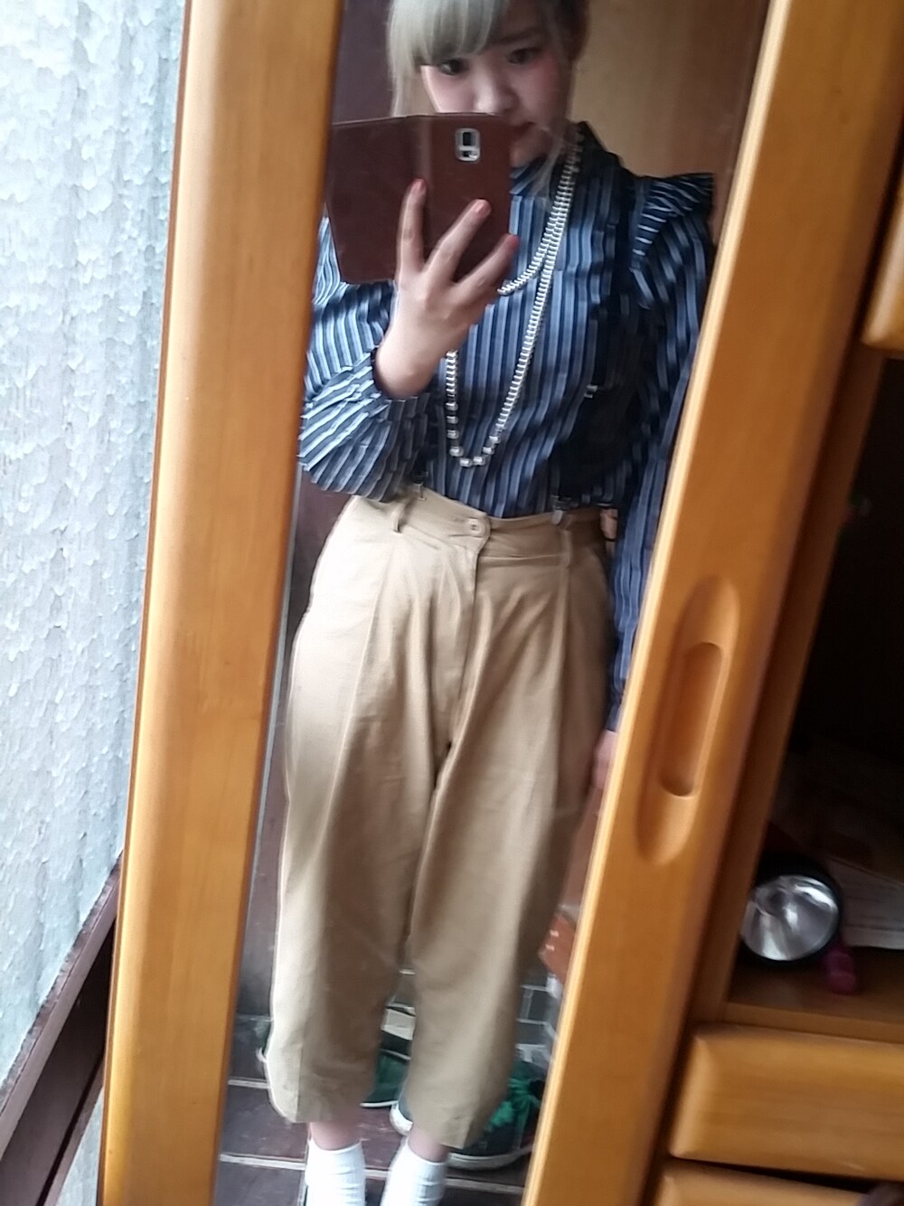 初めての投稿です。 肌寒くなりましたね。 先日購入したお気に入りのブラウスです。 ポーラーハットと、エナメルのローファーで秋っぽくしました。
